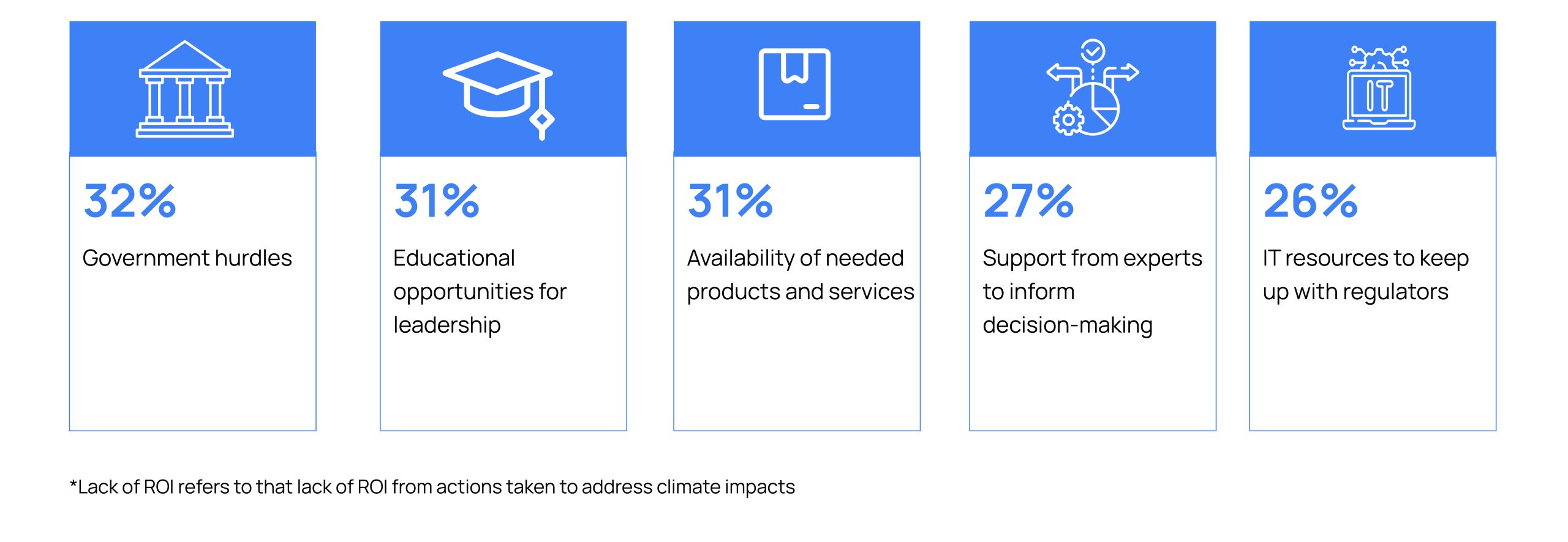 A survey of 167 agricultural finance institutions by the Deloitte and Environmental Defense Fund highlights that the biggest barriers to action on climate change are: