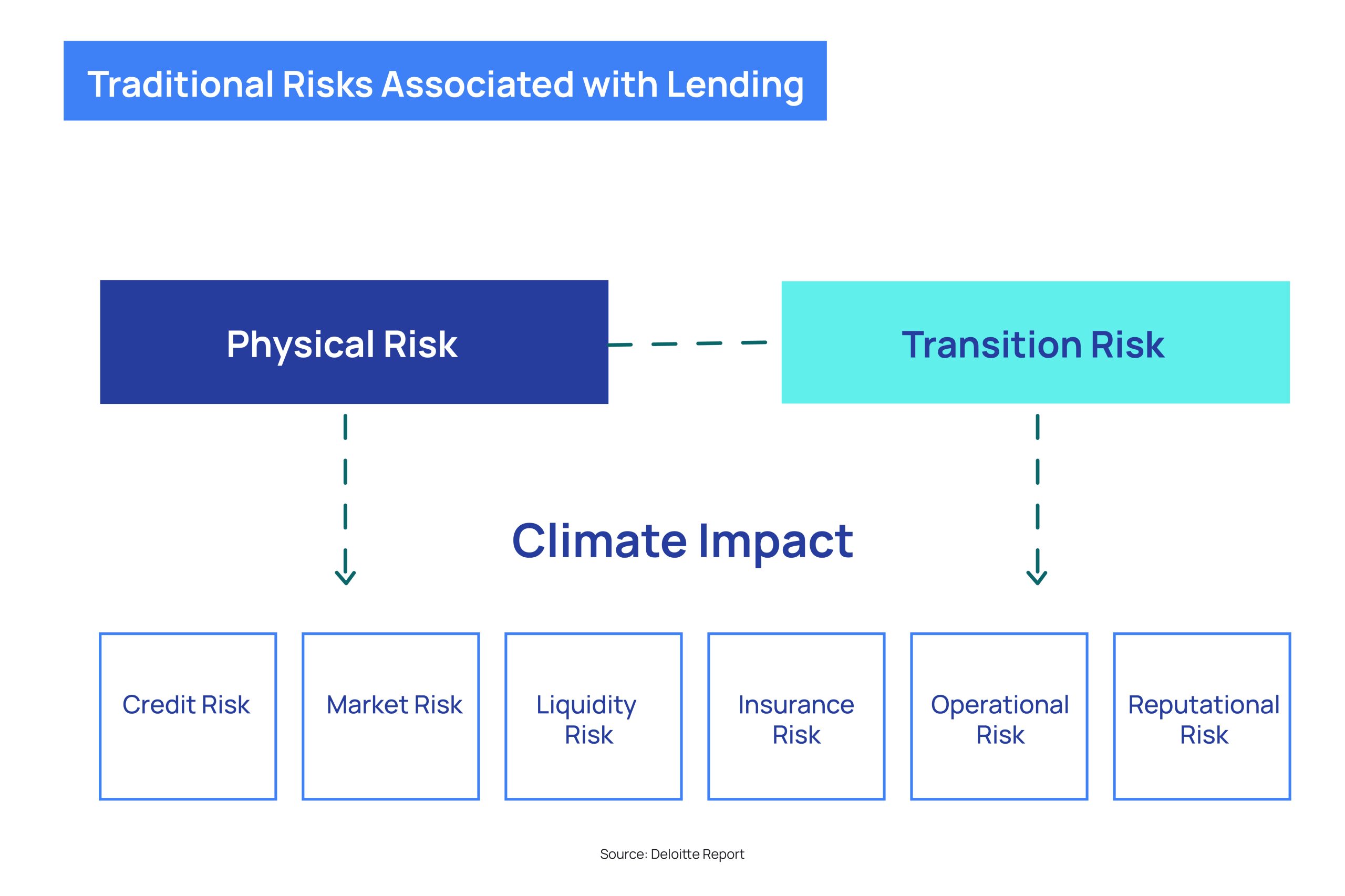 The image below from a Deloitte report shows how financial leaders are well aware of the traditional risks associated with lending like credit, market, liquidity, insurance, operational, and reputational risks.